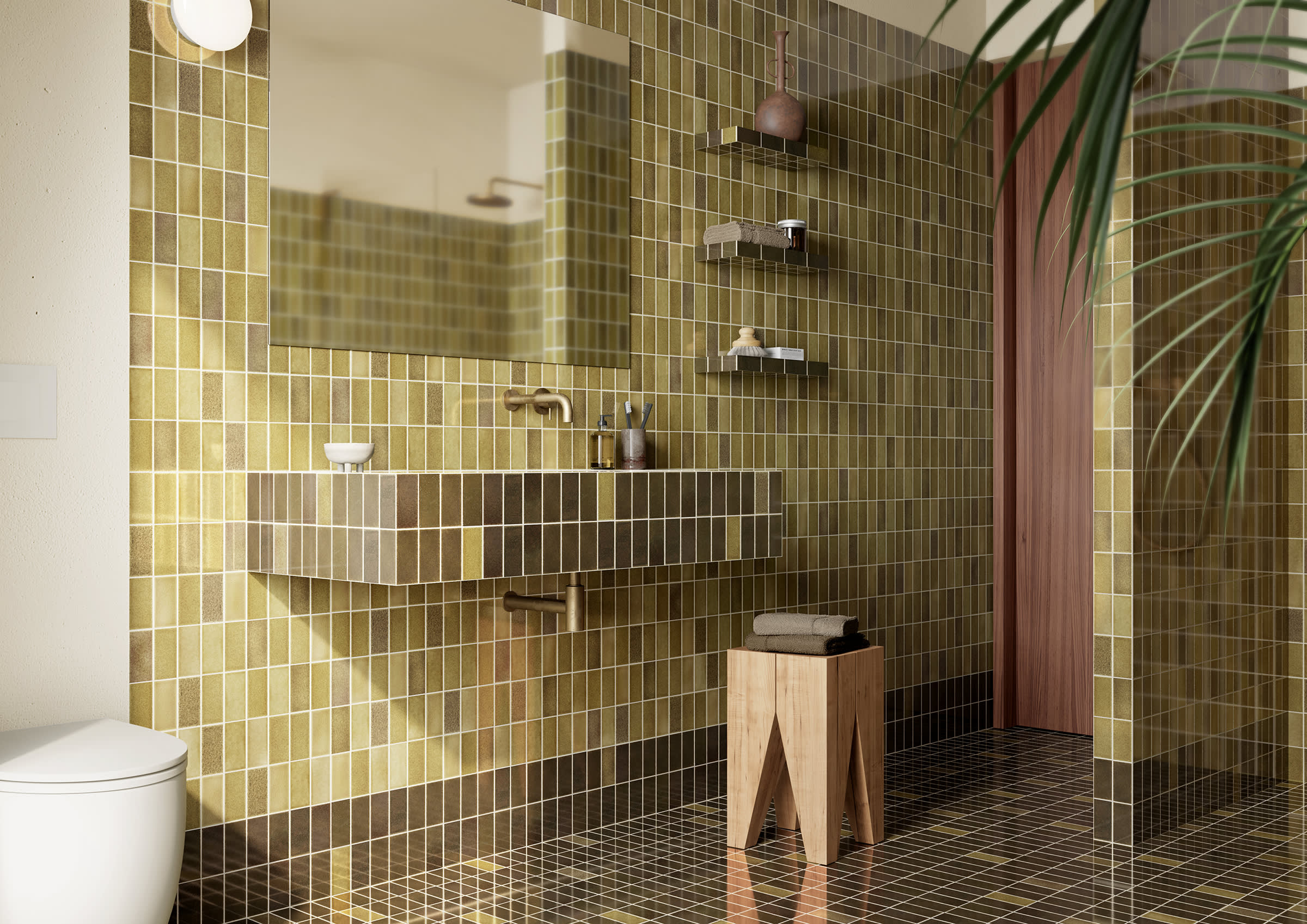BATHROOM LISBON, PORTUGAL STUDIO MIMESI EXCINERE VERDIGRIS TILES SHORT GLAZES B, D WITH SPECIAL JOLLY TILES
