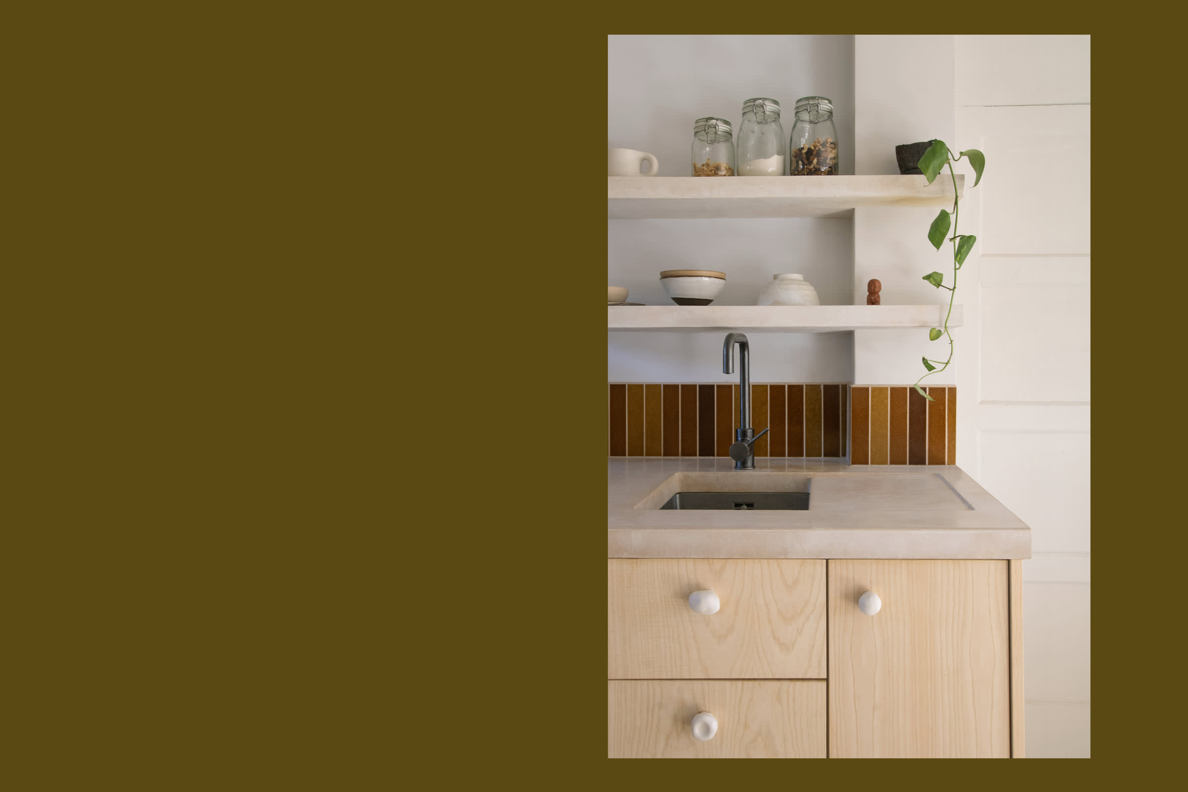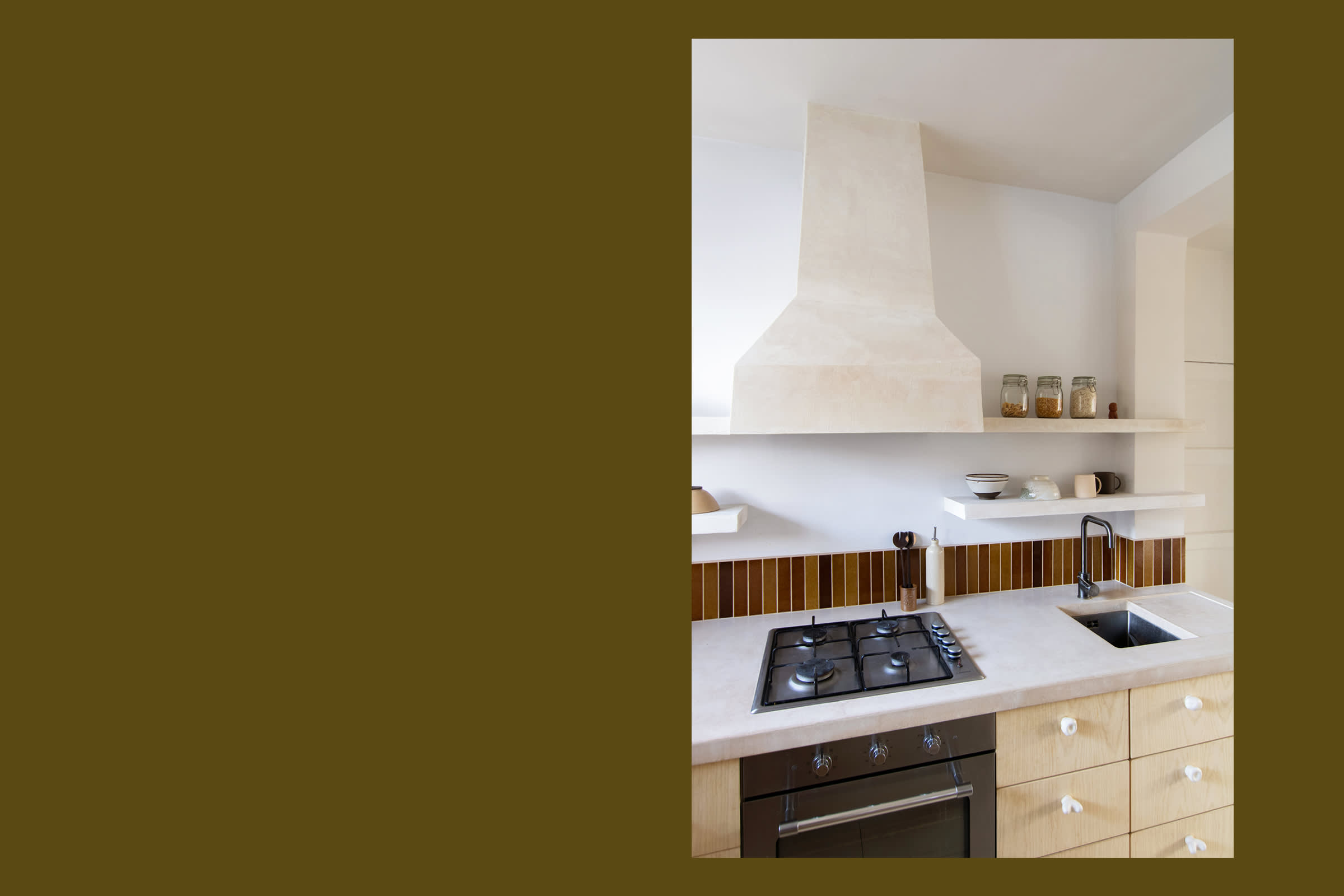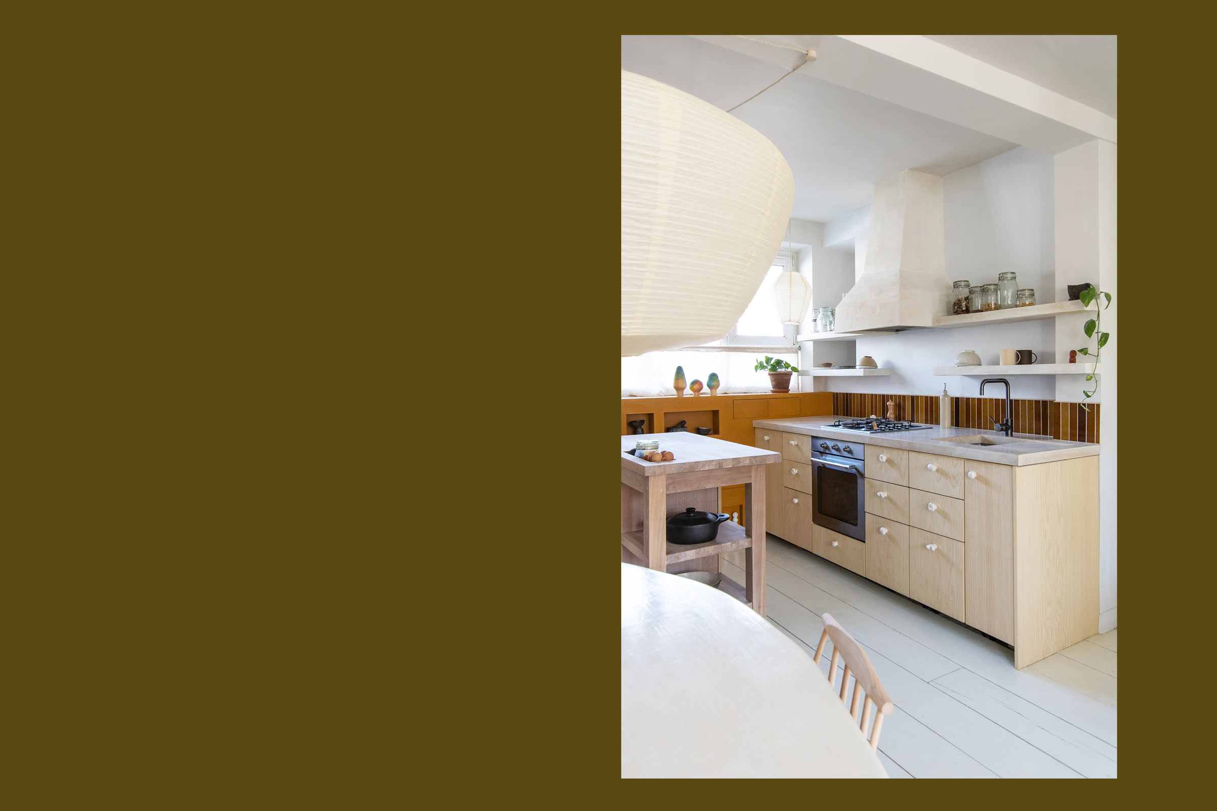RESIDENTIAL KITCHEN, LONDON, TOM COLLISON & TOM LAWSON, EXCINERE TERRA TILES LONG, GLAZES A, B, C AND D. PHOTOS TOM LAWSON.